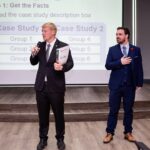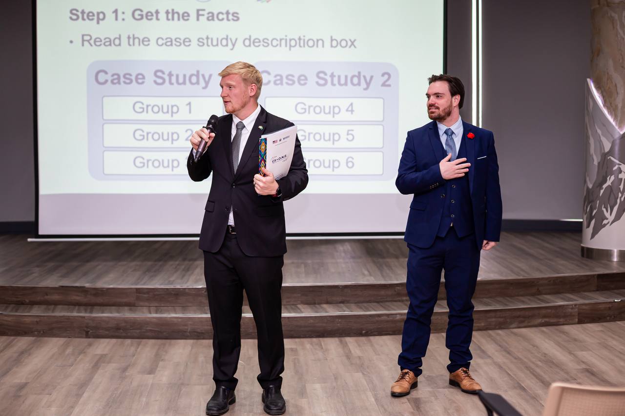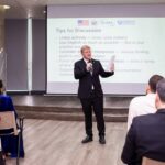 Throughout the event, participants engaged in interactive, skills-based sessions designed to translate English-language development into practical professional application. A structured networking activity encouraged participants to introduce their expertise, identify common interests, and build meaningful professional connections. A collaborative case study brainstorming session challenged teams to analyze real-world scenarios and develop practical, market-oriented solutions. During group presentations, U.S. Embassy representatives and program experts provided feedback, linking participants’ ideas to economic and policy frameworks and reinforcing analytical thinking, public speaking, and strategic communication skills. The applied format ensured that language practice was grounded in professional realities.
